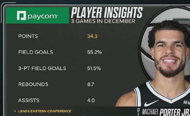 近四場比賽小波特場均狂轟34.3分7.5板3.8助1.5斷炸裂數(shù)據(jù),本賽季至今場均26.3分7.4板3.2助,投籃命中率50.1%,場均以40.3%命中率扔進3.7記三分球,籃網(wǎng)暫時以6勝18負排名東部第13。